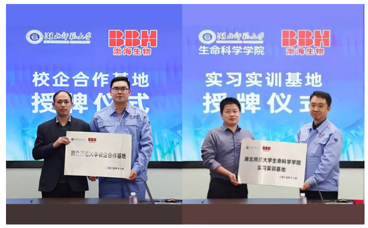 座谈会后,双方共同举行了“校企合作基地”与“实习实训基地”授牌仪式,这一举措标志着生命科学学院与湖北渤海生物控股集团的合作正式迈入实体化运行的新阶段。