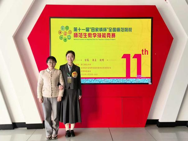 优异成绩的取得,既源于刘媛媛同学自身的勤奋努力,也得益于我院完善的师范生培养体系。作为国家级一流本科专业建设点,我院始终坚持以立德树人为根本,构建了理论与实践深度融合的培养模式。通过系统化的教学技能训练、常态化的教学竞赛机制以及优质的实践平台搭建,为师范生的成长提供了全方位的支持。此次竞赛中,吴琴副教授和付珊博士等指导教师团队的专业指导,更是学院“以赛促教、以赛促学”育人理念的生动体现。