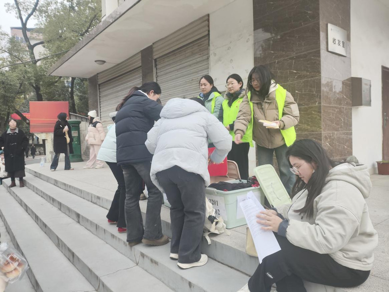考试期间,学院党委副书记李文静、辅导员张良、毕业班班主任及学生党员组成服务队,在考场外设立服务点。他们冒着严寒为考生保管手机、书包等物品,并提供证件遗失应急服务。20日中午,一名考生不慎遗失准考证,辅导员立即带领学生前往附近楼栋协助打印,确保考生顺利入场。