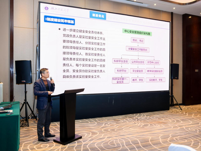 会议第一阶段由湖北师范大学教务处处长刘美风教授主持,他代表学校向与会专家表示欢迎,并感谢各位委员对生物学国家级实验教学示范中心长期的指导与支持。生命科学学院院长胡远亮教授介绍了生命科学学院和示范中心的建设情况,对各位专家莅临指导表示感谢。