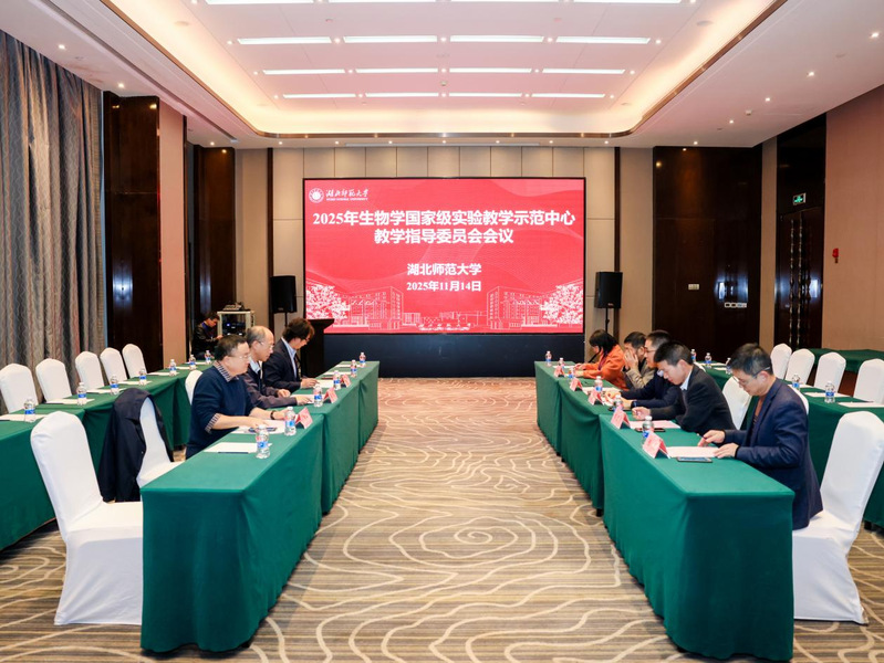 (通讯员 邵海晨)2025年11月14日晚,生物学国家级实验教学示范中心(以下简称“示范中心”)教学指导委员会会议在黄石富力万达嘉华酒店顺利举行。会议采用线上线下相结合的方式,示范中心教学指导委员会委员王建波教授、高坚教授、何玉池教授、邱保胜教授、侯建军教授及学校教务处处长刘美风教授、生命科学学院院长胡远亮教授、副院长陈亮教授参加会议。